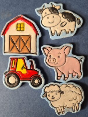 Sets of 5 delightful Farm characters to paint and attach to a magnet.