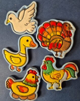 Sets of 5 delightful Farm characters to paint and attach to a magnet.