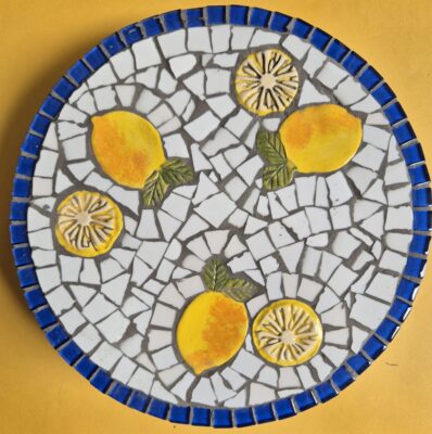 A round pot stand kit with lemon and lemon leaf inserts.